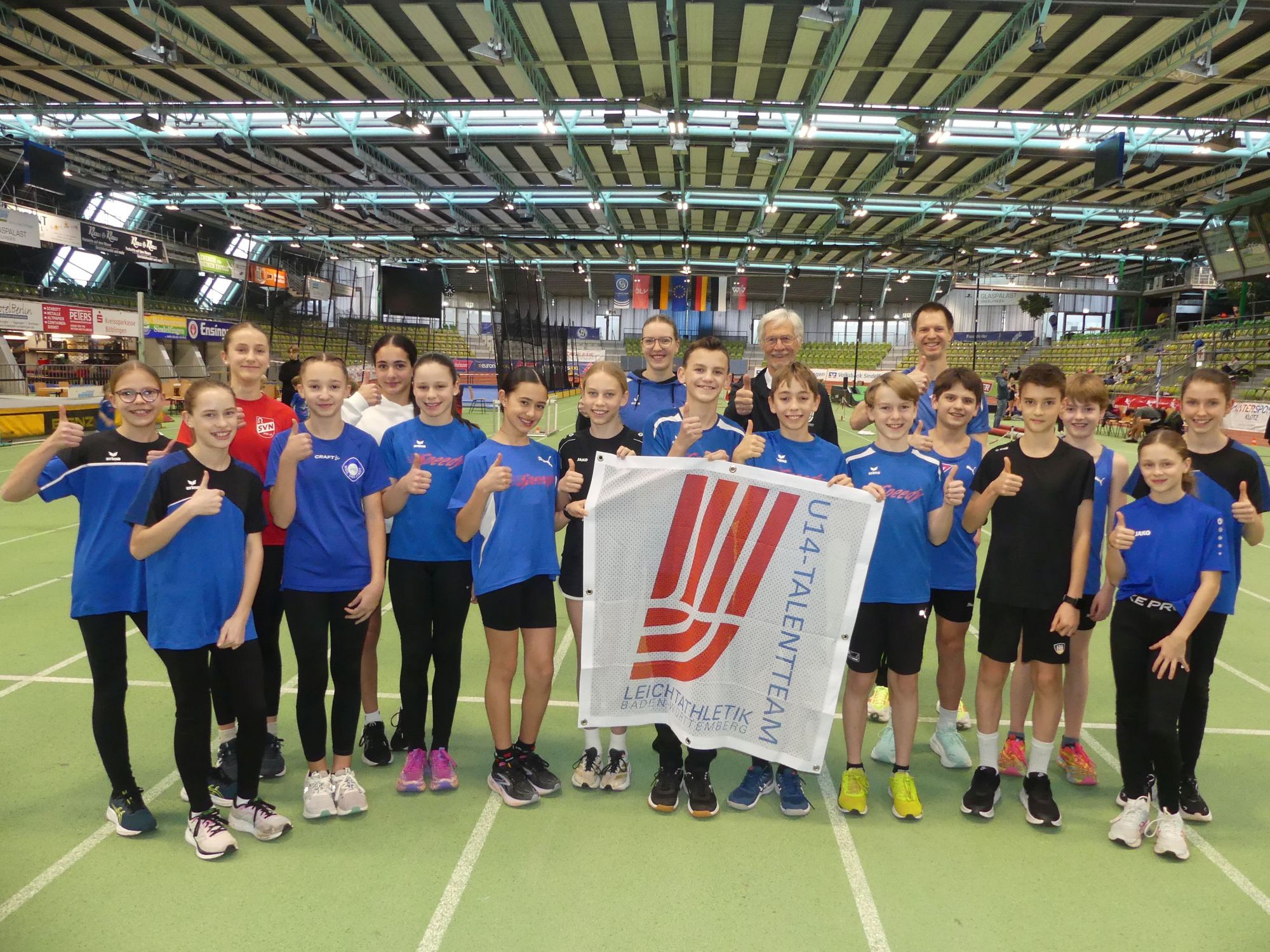 Im Sindelfinger Glaspalast gibt es jetzt Trainingstermine für die jungen Talente. Am Freitag hat WLV-Präsident Dieter Schneider den örtlichen Teamleitern Sebastian Fichner (Sindelfingen) und Anne Thielmann (Holzgerlingen) das Label „U14-Talentteam Leichtathletik Baden-Württemberg“ überreicht. Während die möglichen Medaillengewinner von morgen trainieren, schmückt nun ein großes Banner für das Talentteam Böblingen die Halle.