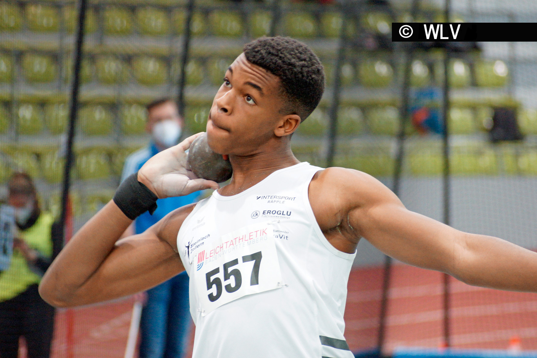 Alle gültigen Stöße von Kelson De Carvalho (LG Steinlach-Zollern) hätten zum Sieg gereicht. Mit dem letzten gültigen katapultierte er sein Arbeitsgerät auf 16,14 Meter. Das waren dann gute 1,50 Meter Vorsprung auf den Silbermedaillengewinner Yannick Winterhalder (LG Baar). „Ja, mit 16-Meter-Marke hab ich gerechnet, aber so weit drüber, damit nicht. Damit bin ich zufrieden“, sagte der neue Baden-Württembergische Jugendmeister.
