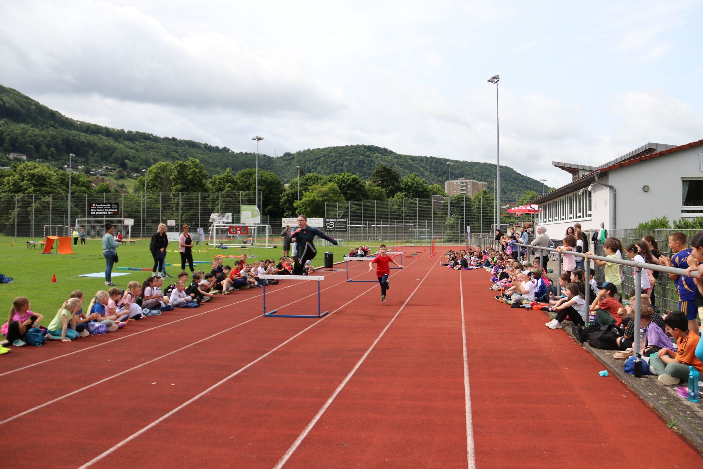 In Geislingen am 05.06. durften insgesamt 11 Klassen mit 250 Schüler:innen die acht Grundschule-trifft-Kinderleichtathletik-Stationen ausprobieren und neue Bewegungsformen kennenlernen. Die Kinder waren begeistert und motiviert und wurden zusätzlich durch die Topathletin der TG Geislingen angespornt. Lara Kneifel zeigte den Kindern, wie schnell man über die Hürden laufen kann, und wurde mit riesigem Applaus und lauten Jubel-Schreien belohnt.