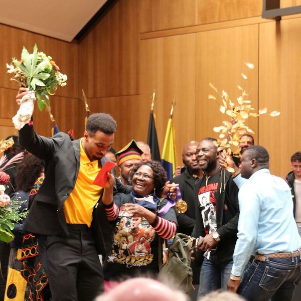 Leos Familie hatte ihm ein Lied geschrieben, in dem es hieß „Leo the German, let’s go!“. Schnell sang der gesamte Saal das Lied mit und Leo und sein Vater legten eine kleine Tanzrunde ein. Anhand Leos sichtlicher Freude, schien die Überraschung gelungen. Es folgte noch ein Tanz, den Leo gemeinsam seiner Familie aufführte und alle klatschen begeistert zum Takt der Trommeln.