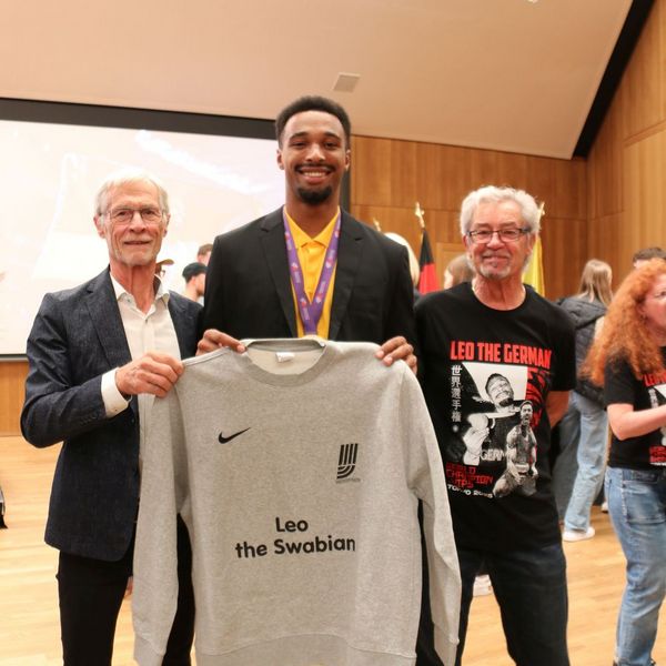 Leo Neugebauer ist auch unter dem Namen „Leo the German“ bekannt, so lautete sein Instagram-Kanal (@leothegerman). Daran anknüpfend wurde Leo von Dieter Schneider ein Sweatshirt mit dem Aufdruck „Leo the Swabian“ überreicht. Nicht nur dem US-Studenten gefiel das Präsent, auch alle Anwesenden jubelten.